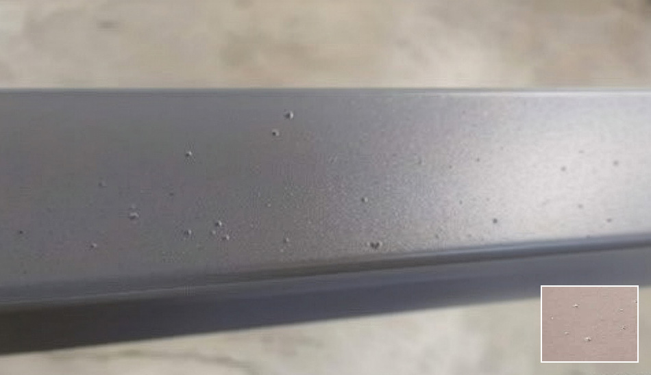 Le inclusioni sono corpi estranei inglobati nel film verniciato a polvere, visibili come punti o asperità superficiali. Possono derivare da polvere ambientale, residui di combustione o contaminazione della polvere stessa.